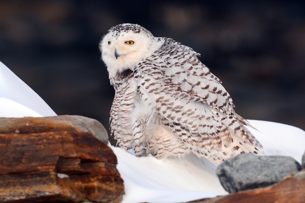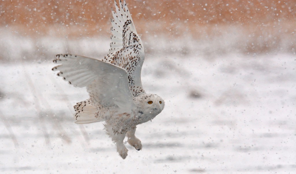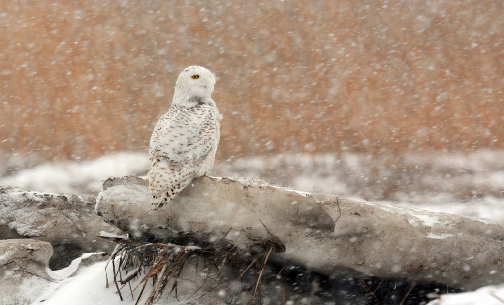 The lovely female Snowy from Rye, New Hampshire, really stole the show! She usually perched on various cottages, with an adoring crowd gathered below. The afternoon of the snow storm it cleared up a bit but the winds were howling and I watched her fly from a rooftop to the beach area. It took 2 people to eventually find where she had landed… on a rock next to another bigger rock serving as a wind break so she could preserve a bit more energy in the sub-zero temperatures. Several of her admirers saw me photographing and visited for a while but none could take the frigid cold for too long. I stayed until sunset, over 3 hours in all in wickedly cold weather, and I needed all 6 layers of clothing (including three winter coats!) to keep me from freezing to death. There were times when I pressed the shutter release and nothing happened because I couldn’t feel my hands any longer.