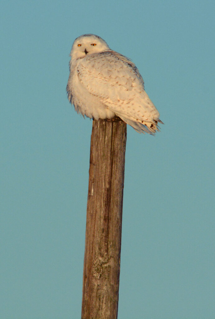 I moved in closer and closer, and even got a head shot from 20 feet away. The Snowy never flinched for a moment, and gave me one of the top 10 bird shoots of my life. I left her there with frozen tears on my face, as I knew that this God’s compelling answer to a prayer seeded in my childhood when my fascination with birds of prey started while watching nature shows with my dad. What a blessing that Snowy Owls rained down on us in the lower 48 all winter long, and so many people had magical moments like these, experiencing our Creator God through the piercing yellow orbs of a giant white fluffy owl sent all the way from the Arctic.