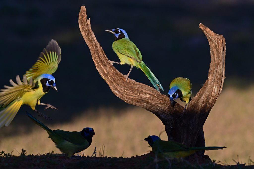 After a wonderful visit to South Texas in 2012 I had to return, and the Valley did not disappoint. My favorite Texas park is Estero Llano Grande State Park, with never a dull moment as the half dozen ponds, gardens, feeding stations and scrub area always have great moments to offer, like Least Grebes, Great Kiskadees and Vermillion Flycatchers grabbing scads of dragonflies! I spent two days at Laguna Seca Ranch with photo blinds set up at several ponds and feeding stations. The Green Jay show was impressive, with many species visiting the ponds, including a wily coyote at dusk. My guide, Paul Denman, did a fantastic job setting me up for endless phot ops. The last two days were with local guide, Mary Gustafson, who is delightful, and current on every significant bird sighting in the Valley. The photo ops with Mary were a 2-day parade… hunting White-tailed Kites, all 3 kingfisher species in one day, a Zone-tailed Hawk, hungry Couch’s Kingbirds, a not-so-shy Screech Owl, and bathing beauties like the Altamira Oriole and Green Jay. Even the staff at the Holiday Inn Express in Pharr were wonderful, so helpful and friendly! So looking forward to a return trip in April 2017 for that Painted Bunting and other South Texas gems!