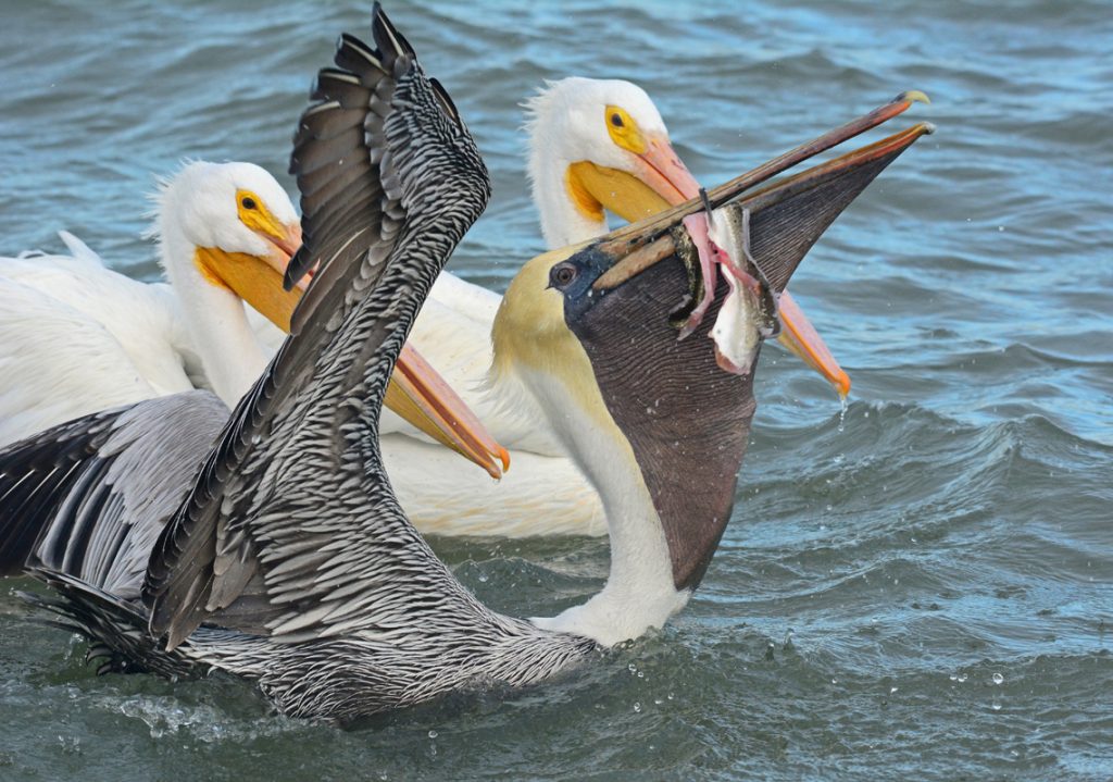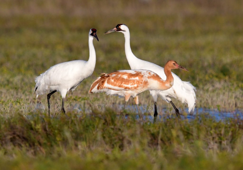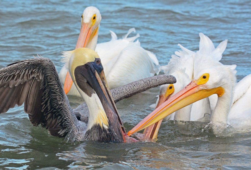 The first leg of the trip was all about the cranes near Rockport, and it had been nearly 20 years since I had last visited the statuesque wintering Whoopers on the Texas coast. My trusted local guide, Jim Friebele, was nursing a foot injury, but he took care of me, regardless, setting me up with a trusted local fishing guide. Captain Ryan took me out on the Intercoastal Waterway for two sunny mornings in a row, and the cranes were cooperative well beyond my expectations. A pair flew in from a mile away and landed right in front of the boat, chasing off another pair in a prime feeding area at Aransas. Special birds like Peregrine Falcon, Long-billed Curlew and Reddish Egret would appear from nowhere for a close fly-by. The highlight for me was a family of Whoopers with their tawny juvenile finally coming into camera range for some nice shots. Twice before they were well over a hundred yards away from our nearest access and simply out of camera range. On the third attempt they finally came in for close-ups that had been planted in my mind’s-eye for over a decade. Back at the dock the good times rolled along with Brown and White Pelicans scrumming over scraps at the fish cleaning station. I never met a pelican that I didn’t love!